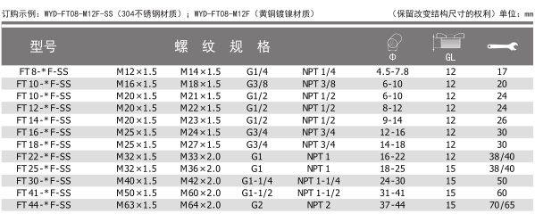 螺牙規(guī)格:公制牙(Metric)、德制牙(PG)、英制牙[G(PF)]以及美制牙(NPT)