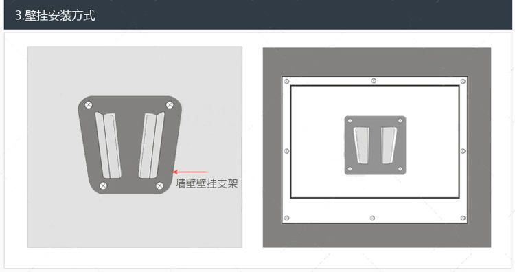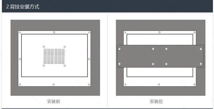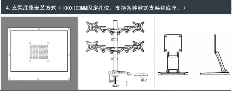 安裝方式:該平板電腦還提供多種安裝方式以適應廣泛應用。滿足客戶對安裝方式的多樣化要求。能滿足VESA 100安裝方式。嵌入式開口安裝方式,掛墻或站立式安裝方式。因重量輕結構堅固,可配合多種安裝支架。