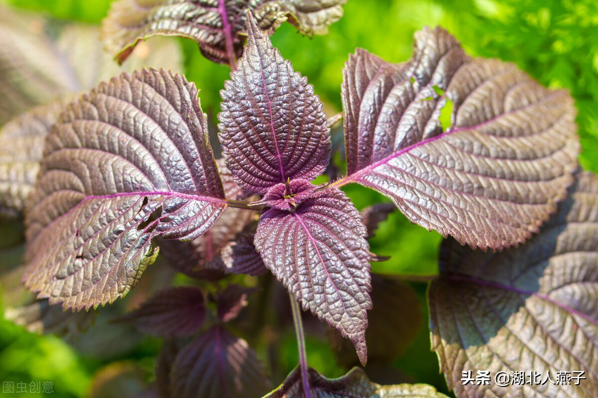 11、紫蘇 紫蘇的顏色是深紫色,紫蘇可以和鯽魚煮湯,紫蘇還可以裹上面粉炸來吃。