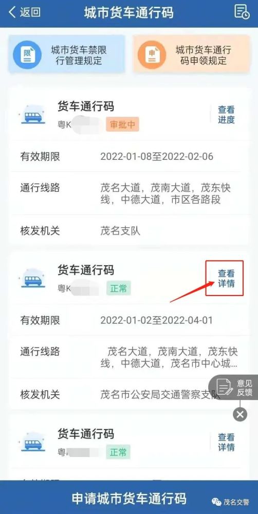 提交資料成功后,企業(yè)委托人員可以在本人手機“交管12123”手機app上查看辦理進度,經公安交警部門審核和審批通過后,企業(yè)委托人員可以在本人手機上查看貨車通行碼。