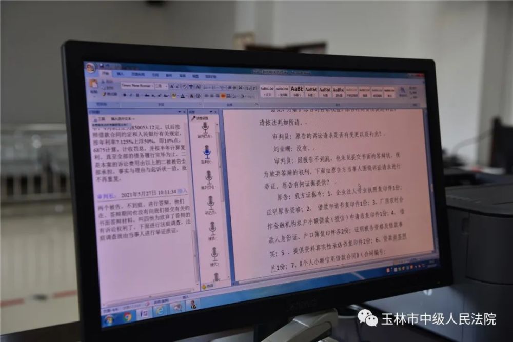 據(jù)了解,玉林市法院開始運(yùn)用該系統(tǒng)進(jìn)行庭審后,該系統(tǒng)還可對庭審活動(dòng)全程留痕,客觀、真實(shí)、及時(shí)、準(zhǔn)確地反映庭審的全部活動(dòng),從根本上解決以前記錄不全、庭后需反復(fù)確認(rèn)、耗費(fèi)時(shí)間長的老問題,打破書記員采用電腦記錄的傳統(tǒng)模式。不僅減輕庭審記錄壓力,提高庭審效率,也有效解決了以前庭審漏記、錯(cuò)記的問題。