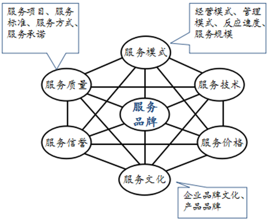 服務(wù)品牌,包含六個基本要素,即服務(wù)質(zhì)量、服務(wù)模式、服務(wù)技術(shù)、服務(wù)價格、服務(wù)文化和服務(wù)信譽。