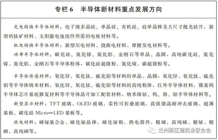 2.半導(dǎo)體新材料。以酒泉、金昌、天水、武威為重點(diǎn),依托白銀有色集團(tuán)、金川集團(tuán)等重點(diǎn)企業(yè),加快單晶切片、半導(dǎo)體封裝新材料、新型熱電轉(zhuǎn)換等重點(diǎn)項(xiàng)目推進(jìn)速度。加快光電轉(zhuǎn)換材料、機(jī)電轉(zhuǎn)換半導(dǎo)體材料、功率半導(dǎo)體材料、半導(dǎo)體傳感材料、新型顯示材料、熱電材料品種類型多樣化和產(chǎn)品高值化,培育半導(dǎo)體材料、新型顯示材料、碲化鉍熱電轉(zhuǎn)換等產(chǎn)業(yè)鏈,實(shí)現(xiàn)硒、碲、碲化鉍產(chǎn)銷量達(dá)到國(guó)內(nèi)第二,打造西部新型半導(dǎo)體材料領(lǐng)先研發(fā)國(guó)家級(jí)平臺(tái)和高端產(chǎn)品生產(chǎn)基地,形成百億級(jí)半導(dǎo)體新材料產(chǎn)業(yè)集群。