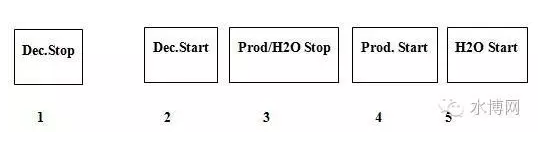 4 號鍵為開始生產(chǎn)鍵。從待生產(chǎn)狀態(tài)按下該鍵時,藥泵、泥泵變頻器處于允許啟動狀態(tài),再擰開藥泵、泥泵鑰匙,藥泵、泥泵立即運轉(zhuǎn),正常進藥、進泥,開始生產(chǎn)。
