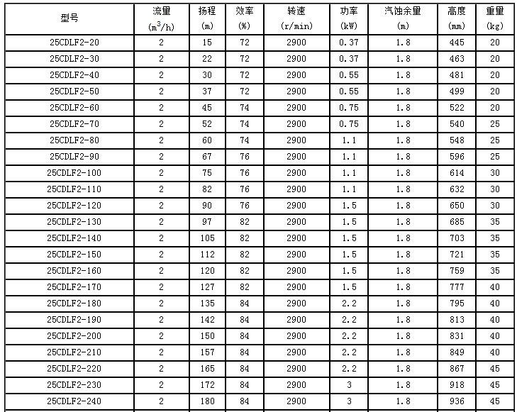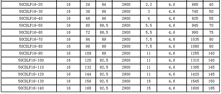 七、CDLF不銹鋼立式多級(jí)離心泵技術(shù)參數(shù)
