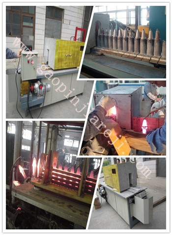 具體工藝過(guò)程大概介紹如下:一、要用到我們的JZ-200中頻電爐及截齒專用工裝,這套設(shè)備的主要目的是對(duì)截齒透熱,值得一提的是它是自動(dòng)化工裝,可使截齒自動(dòng)運(yùn)行到爐體,自動(dòng)加熱到一定的溫度(這個(gè)數(shù)字不能詳細(xì)說(shuō)出),它會(huì)自動(dòng)運(yùn)行出來(lái);二、等截齒自動(dòng)運(yùn)行出來(lái)之后,會(huì)掉入淬火液(根據(jù)材質(zhì)不同,用不同的淬火液,比如:水、油等);三、在淬火液中讓截齒的溫度自動(dòng)下降到某溫度;四、將此時(shí)的截齒放到回火爐中保溫一定的時(shí)間,然后讓它自然冷卻,OK,此時(shí)已成為一個(gè)完整的耐用的截齒了。