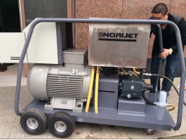 來自歐洲的尖端的工業(yè)級超高壓冷水清洗機,壓力可高達(dá)500巴,適用于各種最高難度的清潔工作,換熱器及冷凝器的日常清洗及疏通。緊湊、現(xiàn)代的設(shè)計和各種人性化設(shè)計的附件,使其擁的非常靈活的操作性。本設(shè)備居有極高的性價比,絕對滿足客戶最嚴(yán)格的要求。曲軸泵,工業(yè)陶瓷柱塞及多層工業(yè)密封件的選用,保證設(shè)備的超長壽命。連續(xù)工作時間長達(dá)8小時以上,整機工作壽命更可達(dá)8000小時以上。 標(biāo)準(zhǔn)備件 技術(shù)參數(shù) 1. 高精度曲軸泵 2. 三陶瓷柱塞與黃銅泵頭 3. TSI智能控制 4.壓力調(diào)節(jié)器/安全閥 5. 旁路不銹鋼水箱 6. 自動板機柄/桿 7.壓力表 8.自動停機 9.電機熱保護(hù) 10.連軸器連接泵與電機 11.重載輪胎 12.不銹鋼外殼/加固鋼結(jié)構(gòu) 13.10米高壓軟管 14.25度高壓噴嘴 15.重載把/托電源供應(yīng) 相/伏/赫茲 3/380/50 最大水流量L/H 900 壓力 巴/兆帕 500/50 最大進(jìn)水溫度 攝氏度 60 連接功率 千瓦 22 轉(zhuǎn)速 RPM 1450 機器重量 公斤 195 尺寸(長*寬*高 毫米) 1450 x 900 x 950 產(chǎn)品應(yīng)用 1.水泥廠水泥結(jié)皮,結(jié)垢,回轉(zhuǎn)窖及設(shè)備的清洗 2.建筑工地的混凝土清洗打毛/表面涂層清除。 3.大型運輸工具的表面清洗及檢修期間的內(nèi)部清洗。 4.鑄件表面無損清沙。 5.工業(yè)設(shè)備的表面清洗及表面除漆防銹。 6.凝結(jié)器,換熱器及冷凝器的日常清洗及疏通。 7船舶除銹及清洗