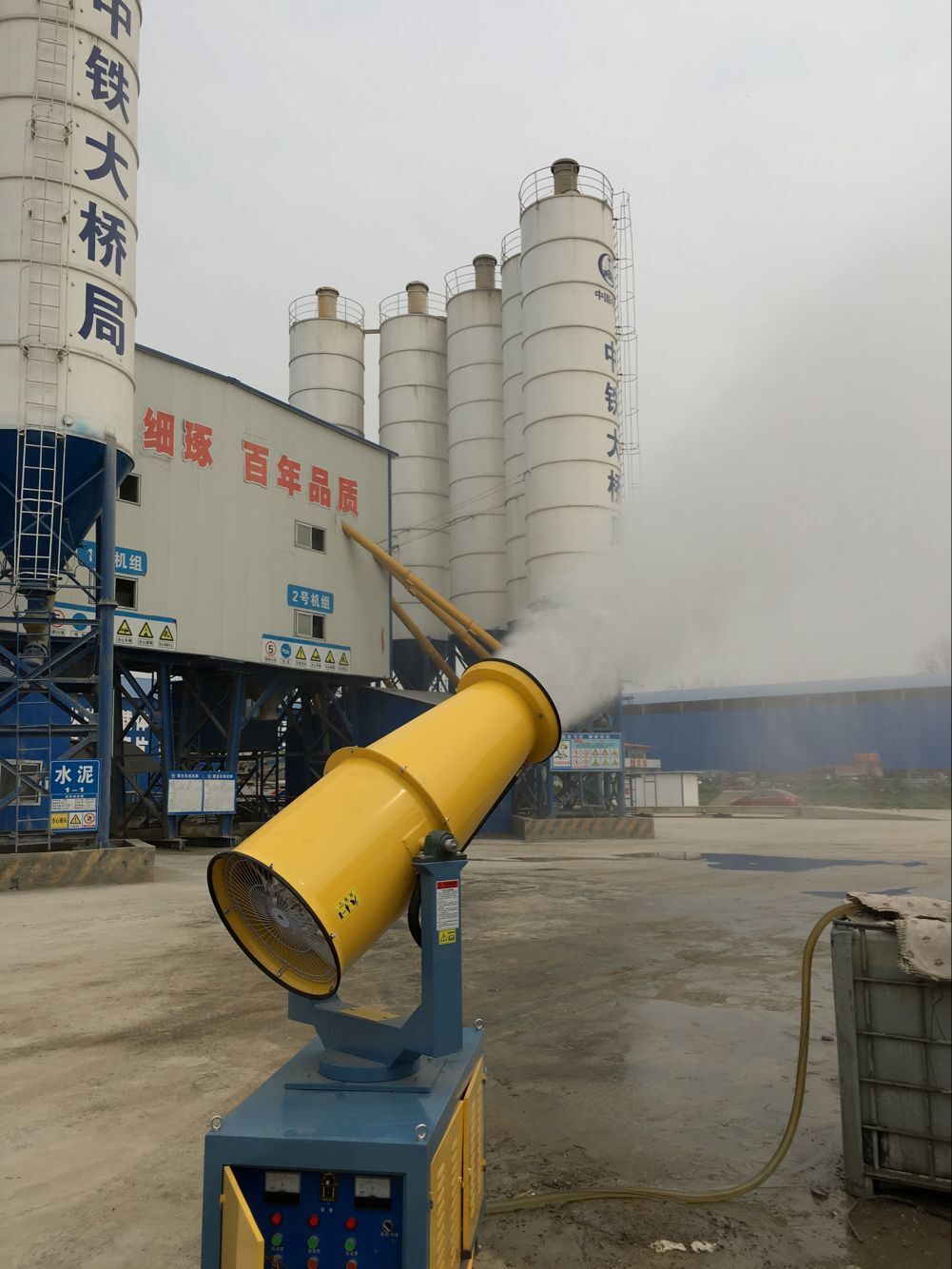 對容易引起塵埃的堆場噴水除塵時,噴出的霧粒細(xì)小、與飄起的塵埃接觸時,形成一種潮濕霧狀體,能快速將塵埃抑制降沉;