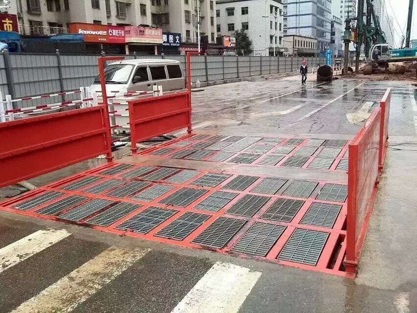 自動沖洗設備系統(tǒng)采用無接觸技術對車體進行全方位立體式清洗,能實現(xiàn)沖洗底盤、車輛兩側無接觸沖洗。該系統(tǒng)有洗輪機底盤、格柵板(鐵篦子)、左右側噴管(含噴嘴)、控制箱、水泵五部分組成。