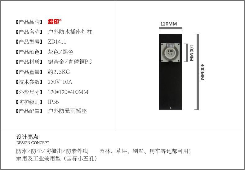 上海防水插座柱ZD1411 草坪柱詳細介紹