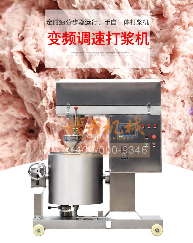 贛云180型變頻調(diào)速打漿機(jī)是江西贛云食品機(jī)械有限公司生產(chǎn)的一款手自一體,變頻調(diào)速的肉丸打漿機(jī);是一款大型的肉丸打漿機(jī),100L的大容量一次可制漿180斤,日產(chǎn)1噸只需要11鍋;該設(shè)備可手動(dòng)操作制漿,調(diào)試不同工藝品質(zhì)產(chǎn)品,根據(jù)產(chǎn)品工藝改良隨時(shí)控制漿品質(zhì)量;自動(dòng)制漿既通過(guò)操作顯示屏設(shè)定好打漿步驟,定時(shí)定速打漿,使得肉漿品質(zhì)及工藝流程保持不變,易復(fù)制,易擴(kuò)展,不受工藝限制;適用于各大肉丸加工廠,肉制品加工廠,肉聯(lián)廠,半成品配送中心等