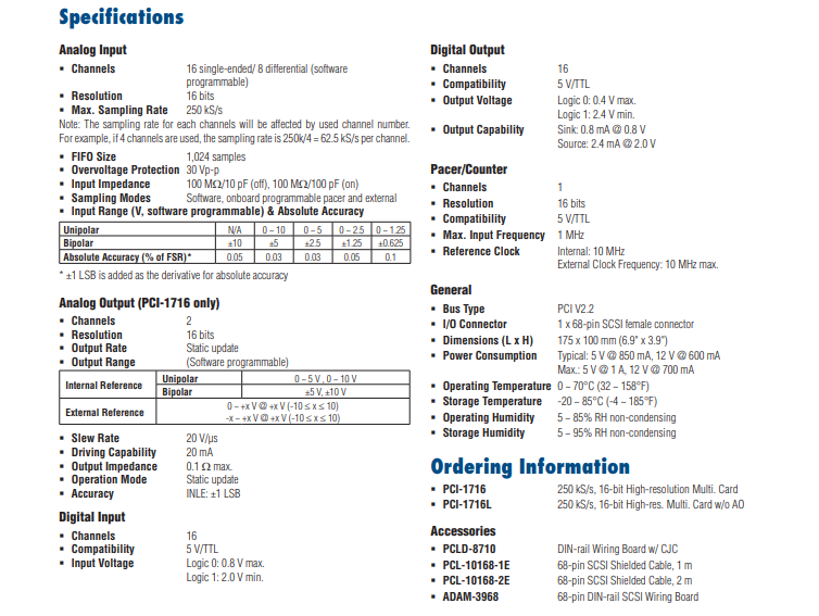 特點(diǎn):16位高速多功能采集卡,PCI總線