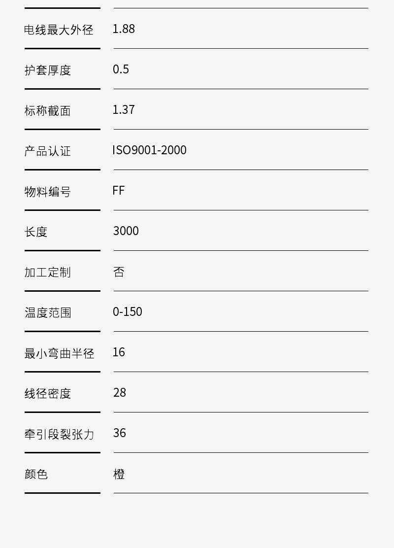 | 護(hù)套材質(zhì) | FF | 拉伸強(qiáng)度 | 62 |